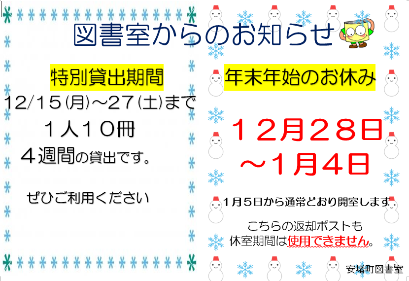 令和7年12月28日(日)から令和8年1月4日(日)まで